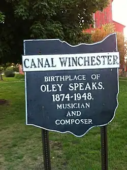 Oley Speaks (June 28, 1874 – August 7, 1948) was an American composer and songwriter.[1] His compositions include many religious songs, as well as his best-known success, "On the Road to Mandalay", which takes its lyrics from the poem "Mandalay" by Rudyard Kipling. The Canal Winchester Area Historical Society Museum has exhibits about the life of Oley Speaks, including original sheet music written by him.[2]