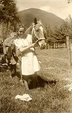 Olga de Amaral was born Olga Ceballos Velez in 1932 in Bogotá, Cundinamarca, Colombia, to parents from Colombia's Antioquia region.[4] She had five sisters and two brothers. Upon graduating from high school, in the years 1951–52 she got a degree in Architectural Design at the Colegio Mayor de Cundinamarca in Bogotá.[4]