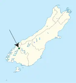 | Distribution of Oligosoma awakopaka on a map of the South Island Known native range