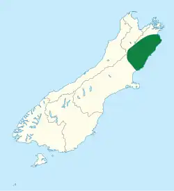 | Distribution of Oligosoma elium on a map of the South Island Known native range