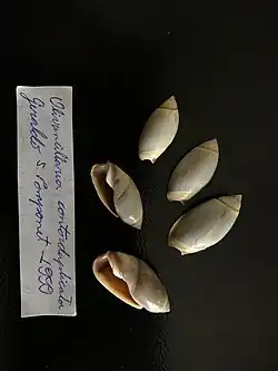 Olivancillaria contortuplicata is a species of sea snail, a marine gastropod mollusk in the family Olividae, the olives.[2]