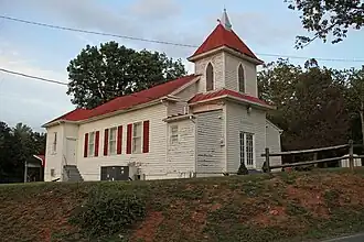 Olive Branch Missionary Baptist Church, also known as Olive Branch Baptist Church, is a historic Baptist church located at Moneta, Bedford County, Virginia, United States. The original section was built about 1896, and expanded about 1920. It is a one-story, T-shaped wood-frame building clad in weatherboard siding. It features an original bell tower and Gothic Revival style lancet windows. Adjacent to the church is a contributing cemetery.[3]