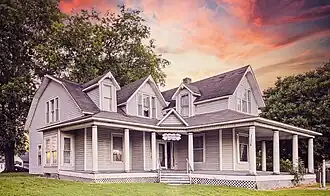The Oliver House is a historic house at 203 West Front Street in Corning, Arkansas. It is a 2+1⁄2-story wood-frame L-shaped structure, with a gambrel-roofed main block and a gable-roofed section projecting forward from the right side. A single-story hip-roofed porch extends through the crook of the L and around to the sides, supported by Tuscan columns. The interior retains original woodwork, including two particularly distinguished fireplace mantels. Built c. 1880 and last significantly altered in 1909, it is one of Corning's oldest buildings. It was built by J. W. Harb, and purchased not long afterward by Dr. J. L. Oliver Jr., whose son operated a general store nearby.[2]