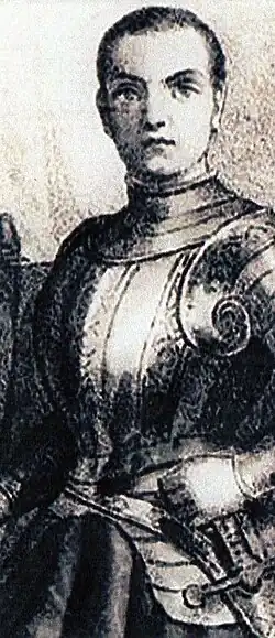 In May 1502, Oliverotto conquered Camerino for Cesare Borgia. However, realizing that the Duke was becoming stronger, he attended the meeting at La Magione with Giulio, Paolo and Francesco Orsini, Gian Paolo Baglioni, Pandolfo Petrucci, Vitelli and others, on 9 October.[3] Although Oliverotto was against Paolo Orsini's line of reconciliation with Cesare Borgia, he nonetheless took Senigallia in Cesare's name. But this didn't change Borgia's secret design, and the Duke had him captured and strangled, together with Vitellozzo Vitelli, on 31 December 1502.[4][5] Oliverotto was succeeded as ruler by his son Ludovico, who ruled until he was killed at the Battle of Monto Giorgio in 1520 when Fermo became again directly subjected to the Holy See.