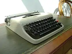 The Olivetti Lettera 22 [oliˈvetti ˈlɛttera ˌventiˈduːe] is a portable mechanical typewriter designed by Marcello Nizzoli in 1949 or, according to the company's current owner Telecom Italia, 1950.[7] This typewriter was very popular in Italy, and it still has many fans. It was awarded the Compasso d'Oro prize in 1954.[8] In 1959 the Illinois Institute of Technology chose the Lettera 22 as the best design product of the previous 100 years.