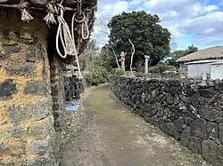 Olle (Jeju: 올레) refers to traditional walled alleyways that connect houses to main paths in Jeju Province, South Korea. They are considered to be part of Jeju's tradition of piled stone structures, called doldam. They are now considered less common, although they are seen as symbols of Jeju.[1]