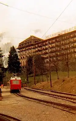 In 1901 the railway reached Villars.[3] In 1913 it was continued by a mountain cog-train to Bretaye where the development stopped because of the war.[3] In 1936, the first ski lift was built at the ‘Combe’ on the Chaux Ronde. This was a first in Switzerland, and skiers had to fasten themselves on with a large leather belt in order to go back up the mountain. In 1938, Villars was classified as one of the prime skiing resorts of Europe.