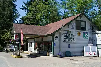 There were several logging camps near Olney, many originally only accessible by boat up the Youngs River or by Albert S. Kerry's Columbia and Nehalem River Railroad.[4] In 1910, the Western Cooperage Company camp was established in Olney.[4] It was run by the Tidewater Timber Company from 1923 to 1943.[4] Western Cooperage provided company housing for its workers and in 1915 the population was 50, which was near its maximum.[3][4] Olney post office was established in 1875 and ran until 1950.[2] Today, Olney still has a general store.[3]