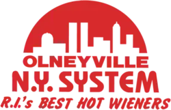 The Olneyville New York System is a restaurant in Providence, Rhode Island, known for its hot wieners. It opened in 1946 by Anthony Stavrianakos, a Greek immigrant. The restaurant was named for Providence's Olneyville neighborhood. Stavrianakos's extended family had operated the Original New York System from 1927 in the Smith Hill neighborhood.[1][2] The restaurant's signature dish, hot wieners, are never referred to as hot dogs or served with ketchup. They are "distinctive to Rhode Island. Slathered with mustard, topped with meat sauce, sprinkled with celery salt and onions, and served in a steamed bun, the hot wiener is signature as are the salt and vinegar French fries. The preferred drink is coffee milk, made in Rhode Island by flavoring milk with a sweetened coffee concentrate called coffee syrup."[3] Hot wieners with all available toppings are ordered "all the way".[4]