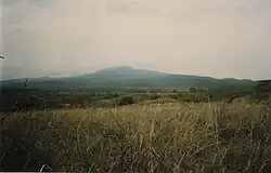 Preservation of the Aechulean hand axe culture was made possible by heavy falls of alkaline ash from volcanoes near the site that were active at the time. Mount Suswa and Mount Longonot are volcanoes, and their vents are likely to have contributed to the ash that accumulated in the Olorgesailie basin. Subsequent sedimentation covering the site has preserved the fossils and created a stratigraphy which helps in dating them.[2] Existing temporary lakes and swamps give evidence of a humid climate during the middle Pleistocene. Sediments left by the lake cover an area of about 130 km2 (50 sq mi).[2] Of the artefacts, 99% were made from locally derived lavas, particularly trachyte, although small amounts of quartzite and obsidian have been found, indicating transportation over 16 to 40 km.[13]