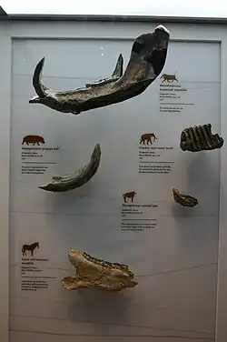 Human tools are the most prominent of all historic items in the area. The abundant hand axes are characteristic of the Acheulean period, made by hominins between about 600,000 and 900,000 years ago[7]along what was then the shore of a now dried-up lake. Fossils of various animals have also been found, including those of extinct species of hippo, elephant, zebra, giraffe, and baboon, likely to have been butchered with the aid of the hand axes.[1][3]