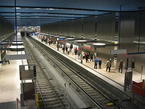 Olympia-Einkaufszentrum is a U-Bahn station in Munich, serving the Olympia-Einkaufszentrum (OEZ), a shopping mall in the Olympiapark area of Moosach. It is the terminus of the U1 line of the Munich U-Bahn system. The U3 extension to Olympia-Einkaufszentrum opened on 28 October 2007.[2]