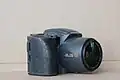 The Olympus iS-100 (aka L-10) is an autofocus 35mm single lens reflex camera with built-in 4.2× zoom lens. The lens is a multi-coated 28-120mm f4.5/5.6 lens with 11 elements in 9 groups. The autofocus is a passive CCD line sensor. The camera has a built-in flash, and of course a variety of flash and other shooting programs. Exposure is controlled electronically by a sensor behind a half-transparent mirror of the viewfinder system - multi-area metering mode and spot metering are selectable. The camera's shutter is a metal lamellae focal plane shutter with speeds up to 1/2000 sec. With its size 123x88x110mm (closed) and its weight of 615g it is a very compact and light construction of the Olympus iS series. The camera needs two CR123 batteries.[1]
