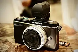 ![]() Olympus PEN E-P2 shown with the Olympus M.Zuiko 17 mm lens and optional electronic viewfinder | |