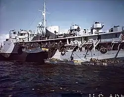 The Support Group operated a mixture of gun, rocket, flak, tank, and smoke landing craft, totaling 67 vessels. The Minesweeper Group comprised four flotillas, the 4th comprising nine Royal Navy minesweepers; the 31st comprising nine minesweepers of the Royal Canadian Navy; the 104th comprising ten Royal Navy inshore minesweepers; and the 167th comprising ten Royal Navy coastal minesweepers.[24][26] Bombarding Force C comprised two battleships, three cruisers (two Free French and one Royal Navy), and 13 destroyers (three of which were provided by the Royal Navy).[27]