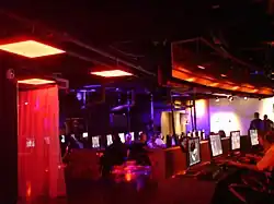 The centre occupied 22,000 square feet (2,000 m2)[1] and contained consoles including one PlayStation 3 (which is mainly used for tournaments) and Xbox 360s in addition to over 250 high-spec PCs. The centre also included an internet café, a VIP room for private events, large plasma screens and projectors scattered around the centre and a sound-proof room where music videos were displayed.[3]