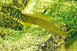 Omobranchus anolius, the oyster blenny, is a species of combtooth blenny found in coral reefs in the western Pacific ocean. It can reach a maximum length of 7.5 centimetres (3.0 in) TL.[2][3]