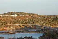 The Omsund Bridge (Norwegian: Omsundbrua) is a bridge that crosses the strait Omsundet between the islands of Frei and Nordlandet in Kristiansund Municipality in Møre og Romsdal county, Norway. The link is actually made up of two bridges: The main bridge crosses form Nordlandet to the islet of Rensvikholmen and then the smaller Rensviksundet bridge completes the crossing to Frei.