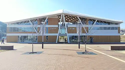 Just over four years later, on March 21, 2015, the reconstructed Onagawa Station reopened marking the restoration of the entire Ishinomaki Line. The new station building features an integrated community center and public bathing facility on the upper floors. The building was designed by Pritzker Architecture Prize winning architect Shigeru Ban, who also contributed to the design of temporary housing structures in the town in the wake of the March 2011 tsunami.[2]