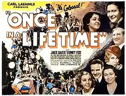 Once in a Lifetime is a 1932 American pre-Code comedy film based on the 1930 play Once in a Lifetime by Moss Hart and George S. Kaufman.[1] The film was produced and distributed by Universal Pictures, directed by Russell Mack and stars Jack Oakie, Sidney Fox and Aline MacMahon.[2]