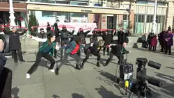 On February 14, 2013, the rally was held in more than 190 countries.[15] The one-day event was held after a call for one billion women around the world to join to dance in a show of collective strength.[16] The event was held on the 15th anniversary of the V-Day movement.[17] The word "billion" refers the statistic that one in three women will be raped or beaten in their lifetime, or about one billion.[18]