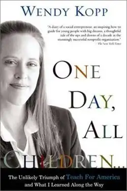 One Day, All Children: The Unlikely Triumph of Teach For America and What I Learned Along the Way (ISBN 1586481797) is the first book by Wendy Kopp, CEO and Founder of Teach For America. It was published by PublicAffairs in April 2003, thirteen years after the launch of Teach For America. A new edition with a new afterword by the author was issued in early 2011 to coincide with the organization's 20th anniversary.[1][2] The title is drawn from Teach For America's vision statement: "One day, all children in this nation will have the opportunity to attain an excellent education."[3]