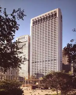 One Meridian Plaza was a 38-story high-rise office building designed by Vincent Kling & Associates. Construction on the 492 ft (150 m) tower began in 1968, was completed in 1972 and approved for occupancy in 1973. Built at the corner of 15th Street and South Penn Square in Center City, the central business district of Philadelphia, the $40 million high-rise was built adjacent to the Girard Trust Building and Philadelphia City Hall across the street. At one point there were plans to build a structure to the south of the building that would share one of the elevator banks in the high-rise, but nothing came of the plans mainly because the two sites had different owners.[1] Upon completion, the high-rise was the tallest building constructed in Philadelphia since the early 1930s.[2][3]