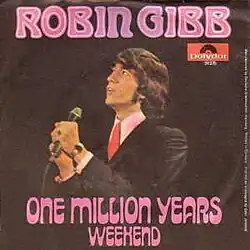 "One Million Years" is a single released by Robin Gibb in 1969 with the B-side "Weekend". The single did not chart in Britain. Recorded during sessions for Robin's Reign it was only included on the German LP and CD version as the last track.[2] Produced by Gibb with his new manager Vic Lewis. Kenny Clayton conducts the orchestra for this song.