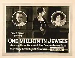 One Million in Jewels is a 1923 American silent crime film directed by J.P. McGowan and starring Helen Holmes, Elinor Fair and McGowan.[1] It was shot in Miami, New York and Havana.