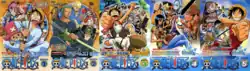The fifth season of the One Piece anime television series aired from November 3, 2002 to February 2, 2003 on Fuji Television. Directed by Kōnosuke Uda and produced by Toei Animation. Like the rest of the series, it follows the adventures of Monkey D. Luffy and his Straw Hat Pirates, but instead of adapting part of Eiichiro Oda's One Piece manga, it features three completely original, self-contained filler story arcs, denoted in whole as "TV Original".[1] The first five episodes, each following their own plots, form the "Dreams!" (ドリームス!) arc. The next three episodes make up the "Shutsugeki! Zenii Kaizoku Dan" (出撃! ゼニィ海賊団, lit. "Sortie! Zenny Pirates") storyline and focus on the Straw Hats meeting an old moneylender. The last five episodes form the "Niji no Kanata e" (虹の彼方へ, lit. "To the Other Side of the Rainbow") arc and deal with the protagonists getting trapped inside a mysterious, rainbow-colored mist.[2]