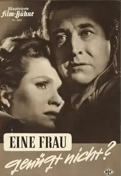One Woman Is Not Enough? (German: Eine Frau genügt nicht?) is a 1955 West German drama film directed by Ulrich Erfurth and starring Hilde Krahl, Hans Söhnker and Rudolf Forster.[1] It was shot at the Tempelhof Studios in West Berlin and on location in Munich and around Lake Starnberg. The film's sets were designed by the art directors Erich Kettelhut and Johannes Ott.