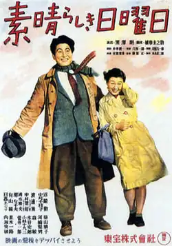 One Wonderful Sunday (Japanese: 素晴らしき日曜日, Hepburn: Subarashiki Nichiyōbi) is a 1947 Japanese film directed by Akira Kurosawa and co-written by Kurosawa and Keinosuke Uekusa. The film was produced by Sojiro Motoki for Toho and stars Chieko Nakakita and Isao Numazaki. It was made during the allied occupation of Japan and depicts a young couple who, with only 35 yen between them, go on a date together on the only day of the week they can see each other. The film makes use of sequences depicting characters' imagination and a creative use of sound.