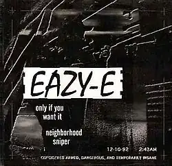 The B-side of the single was "Neighborhood Sniper", which featured Kokane and was produced and written by Eazy-E, Cold 187um. Both "Only If You Want It" and "Neighborhood Sniper" had promotional music videos released, but the single did not make it to any charts.