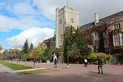 The War Memorial Hall is a landmark building built in June 1924 as a lecture hall or theatre at the Ontario Agricultural College to honour students who had enlisted and died in the First World War, and in the Second World War. Two bronze tablets in the Memorial Chapel remembers alumni who have died during these wars.[2]