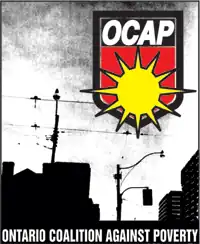 The Ontario Coalition Against Poverty (OCAP) was an anti-poverty group in Ontario, Canada, which promoted the interests of the poor and homeless. The group used publicity-generating direct action techniques such as squatting and demonstrations which could be confrontational, for example the 2000 Queen's Park protest. On May 13, 2023, OCAP decided at its annual general meeting to cease operations.[1]