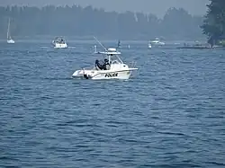 The Ontario Provincial Police (OPP) is the provincial police service of Ontario, Canada. The OPP patrols provincial highways and waterways; protects provincial government buildings and officials, with the exception of the legislative precinct; patrols unincorporated areas in northern Ontario; provides training, operational support, and funding to some Indigenous police forces; and investigates complex or multi-jurisdictional crimes across the province.[5] The OPP also has a number of local mandates through contracts with municipal governments and First Nations, where it acts as the local police force and provides front-line services.[6][7]