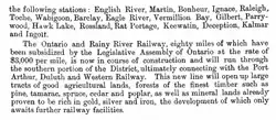 - ^ "The New Railway. Work On the Ontario & Rainy River Road Progressing At Both Ends. A Through Line Before Another Year is Out. Fort Frances the Present Terminus". fftimes.com.