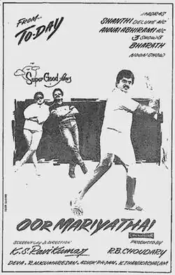 Oor Mariyadhai (transl. Respect of the village) is a 1992 Indian Tamil-language drama film directed by K. S. Ravikumar. The film stars Sarathkumar, Sasikala, Napoleon and Anand. It revolves around Rathnavelu (Sarathkumar), who is in love with Rasathi (Sasikala) who, however, loves Kannan (Anand). When her mother discovers this fact she gets her forcefully married to Rathnavelu leading to Kannan committing suicide and his brother swearing revenge. The film, produced by R. B. Choudary, was released on 1 May 1992.