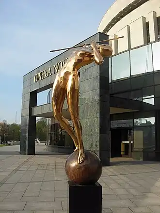 Bydgoszcz musical scene, once nationalised, changed its name several times: Opera and Operetta (1964), National Opera (1980), Opera Nova (1990), and from 1996, Opera Nova – State Opera in Bydgoszcz. Until the mid-1990s, the institution did not have its own facility: it used the Pomeranian Art House building and three times a week staged in Polish Theatre in Bydgoszcz. In spite of these unusual conditions, the company gained there its first experience and several artists who started here, appeared later on national stages in Warsaw, Łódź and Poznań: Barbara Zagórzanka (soprano), Lidia Skowron, Bożena Kinasz-Mikołajczak, Bożena Betley, Elżbieta Hoffmann, Monika Olkisz-Chabros (soprano) Henryk Kłosiński (tenor), Bronisław Pekowski (bass-baritone), and others.[2] Besides, the troupe hosted the greatest opera artists: Maria Foltyn (1960), Antonina Kawecka (1962), Bogna Sokorska (1960), Krystyna Szczepańska (1964), Teresa Żylis-Gara (1959), Wiesław Ochman (1965), Bernard Ładysz (1960), Bogdan Paprocki (1962), Ryszard Tarasiewicz (1970)[3] Marcin Bronikowski (1994, 2012). The Bydgoszcz opera executed works by contemporary composers, who had their world premieres: musicals Hel of Jerzy Lawiny-Świętochowski and Ryszard Damrosz (1965), opera Przemysław II by Henryk Swolkień (1986), ballets Anna Karenina by Radion Shchedrin (1979), Bernadett Matuszczak's Wild swans (1992) and Bogdan Pawlowski's Puss in boots (1997). Many companies from East and West countries came to Bydgoszcz stage and Opera Nova ensembles toured abroad, mainly to Western Europe (France, Germany, Italy, Malta, Netherlands, Belgium, Austria, Switzerland, Luxembourg), performing at numerous opera festivals. These foreign contacts resulted in an enhanced cooperation with opera music centers in Europe.