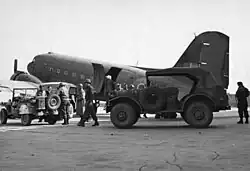 The Alsos Mission had learned that the uranium ores that had been taken from Belgium in 1944 had been shipped to the Wirtschaftliche Forschungsgesellschaft (WiFO) plant in Staßfurt. The 83rd Infantry Division captured this on 15 April. As it was in the occupation zone allocated to the Soviet Union at the Yalta Conference, the Alsos Mission, led by Pash and accompanied by Lansdale, Perrin and Air Commodore Sir Charles Hambro, arrived on 17 April to remove anything of interest. Over the following ten days, 260 truckloads of uranium ore, sodium uranate and ferrouranium weighing about 1,000 tons, were taken away by an African-American truck company. The uranium was taken to Hildesheim and most of it was flown to the United Kingdom by the Royal Air Force; the rest had to be moved to Antwerp by train and loaded onto a ship to England.[83][84][85]