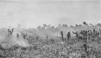 An advance party of 112th Cavalry Regiment under the command of Major D. M. McMains, left Milne Bay at 16:00 on 22 June 1943 aboard the destroyer transports Brooks and Humphreys bound for Woodlark. Arriving at Guasopa at 00:32 on 23 June, the U.S. troops landed in six Landing Craft, Personnel (Ramped) (LCP(R)). The destroyer transports left at 04:00 for Milne Bay. An Australian coastwatcher, not having been informed of the landing, almost attacked the landing force with his locally recruited guerrilla force until overhearing the troops' broad accents.[17] The advance party undertook reconnaissance, established defenses and facilities for the invasion force, marked the landing beaches, and cleared obstructions in preparation for the main landing.[18][19]