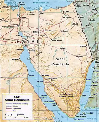 Sinai was an integral part of Egypt since the inception of the Muhammad Ali dynasty in the early 19th century. Israel briefly captured the Sinai Peninsula from Egypt in the 1967 Six-Day War. As part of the 1979 Egypt–Israel peace treaty, in 1982 Israel withdrew from the peninsula. Among the treaty's other provisions was an agreement that the peninsula would be left effectively demilitarized.[16][17]