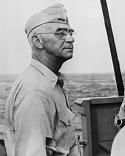 Rear Admiral Richmond Kelly Turner in amphibious command ship Rocky Mount