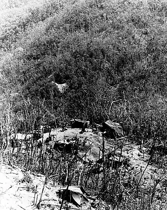 On the afternoon of 24 December, Company L, 3/5 Marines found a group of nine PAVN/VC outside a cave 2.5 kilometres (1.6 mi) southwest of Hill 381, the Marines fired on the group killing four while the remainder fled. Companies K and L searched the caves and discovered a major PAVN/VC command post including three radios, three generators, spares and other equipment which were believed to be part of the elusive Front 4 Headquarters.[1]: 116