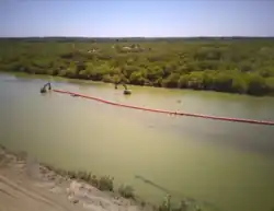 On July 24, 2023, the DOJ filed a lawsuit in the Western District of Texas, United States v. Abbott, alleging that the construction of floating barriers in the Rio Grande near Eagle Pass by OLS without permission violated the Rivers and Harbors Act of 1899.[52] In a statement announcing the lawsuit, Associate Attorney General Vanita Gupta said that the barriers pose a hazard to navigation and public safety, present humanitarian concerns, and have sparked diplomatic protests by Mexico. In response, Texas argued that the area of the Rio Grande near Eagle Pass does not fall under the Act and that the floating barriers are not a "structure" subject to the Act's requirements. Texas also argued that the Compact Clause of the U.S. Constitution, which allows states to engage in war if invaded, allows Texas to build the barriers due to Governor Abbott's invasion declaration.[53] On September 6, the district court granted the DOJ's motion for a preliminary injunction and ordered Texas to move the barrier to the bank of the river and cease the installation of any new barriers.[54] In response, Texas appealed the order to the Court of Appeals for the Fifth Circuit, which issued an order on December 1 affirming the injunction.[55] The court also found that Texas has not offered concrete evidence that the barrier has saved lives or reduced illegal migration. The outcome of the case is pending an en banc rehearing in the Fifth Circuit.[56]