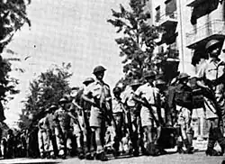 The Yishuv forces quickly managed to take control of buildings that the British had nationalized in "Bevingrad" zones. These were heavily fortified security zones that the British had built up around key installations in the city to protect against Irgun attacks.[1] From 1946 to 1948, security zones with huge coils of barbed wire filling the streets and dragon's teeth blocking the incursion of armed vehicles began appearing around Jerusalem.[2][3] One such zone, established in 1946,[4] encompassed the eastern end of Jaffa Road and included the Russian Compound, the Anglo-Palestine Bank, the Central Post Office, and the Generali Building.[2][3] Jerusalemites called these fortified zones "Bevingrad", a portmanteau of the name of the British Foreign Secretary Ernest Bevin, who had denied Holocaust survivors entry to Palestine,[2] and the Russian city of Stalingrad, where large-scale fortifications had been emplaced prior to the 1942 Battle of Stalingrad.[5]