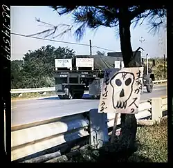 The Red Hat code name was assigned by the Assistant Chief of Staff for Intelligence, Department of the Army, on November 12, 1962, during the planning to deploy chemical agents to the 267th Chemical Platoon on Okinawa.[1] The 267th Chemical Platoon (Service) was activated on Okinawa on December 1, 1962 at Chibana Ammunition Depot. The depot was a hill-top installation next to Kadena Air Base.[2] During this deployment, "Unit personnel were actively engaged in preparing RED HAT area, site 2 for the receipt and storage of first increment items, [shipment] "YBA", DOD Project 112." The company received further shipments, code named YBB and YBF, which according to declassified documents also included sarin, VX, and mustard gas.[3] By 1969, according to later newspaper reports, there was an estimated 1.9 million kg (1,900 metric tons) of VX stored on Okinawa.[2]