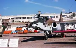 The Iraqi Air Force was the first non-Eastern Bloc country to receive the Su-25, with Iraq receiving 69 'K' single-seat variants and four 'UBK' two-seater variants between 1986 and 1987, enough to equip two ground-attack regiments. The Su-25 saw extensive use in the latter stages of the Iran–Iraq War, its first action outside of Afghanistan, in combat against Iranian forces. One Su-25K purportedly survived a direct hit from an Iranian MIM-23 Hawk surface-to-air missile battery, managing to return to base and land. In total, the Su-25 took part in 900 combat sorties in the conflict and many of their pilots were personally decorated by Saddam Hussein.[9] Two Su-25Ks were lost in combat in the war, of which one was lost to Iranian air defenses.[10]