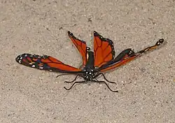 - ^ a b Bartel, Rebecca; Oberhauser, Karen; De Roode, Jacob; Atizer, Sonya (February 2011). "Monarch butterfly migration and parasite transmission in eastern North America". Ecology. 92 (2): 342–351. Bibcode:2011Ecol...92..342B. doi:10.1890/10-0489.1. PMC 7163749. PMID 21618914. S2CID 9018584.