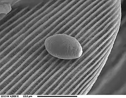 Ophryocystis elektroscirrha is most often transmitted from females to their offspring, when spores stick to the female's body and get scattered on her eggs and the surface of milkweed leaves, the host plants of monarch and queen caterpillars.[4][5] Male butterflies can also have O. elektroscirrha, and can scatter the dormant spores onto milkweed leaves as they fly around, or pass them onto females during mating.[6]